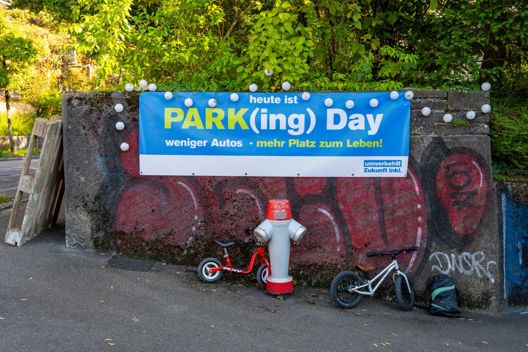 Der Parking Day wird jährlich am 3. Freitag im September weltweit begangen. Ursprünglich aus Kalifornien stammend, hat sich daraus eine weltweite Bewegung entwickelt. Jedes Jahr werden in hunderten von Städten einzelne Parkflächen temporär umgenutzt, um darauf die Utopie einer Auto-befreiten Stadt mindestens partiell erfahrbar zu machen.