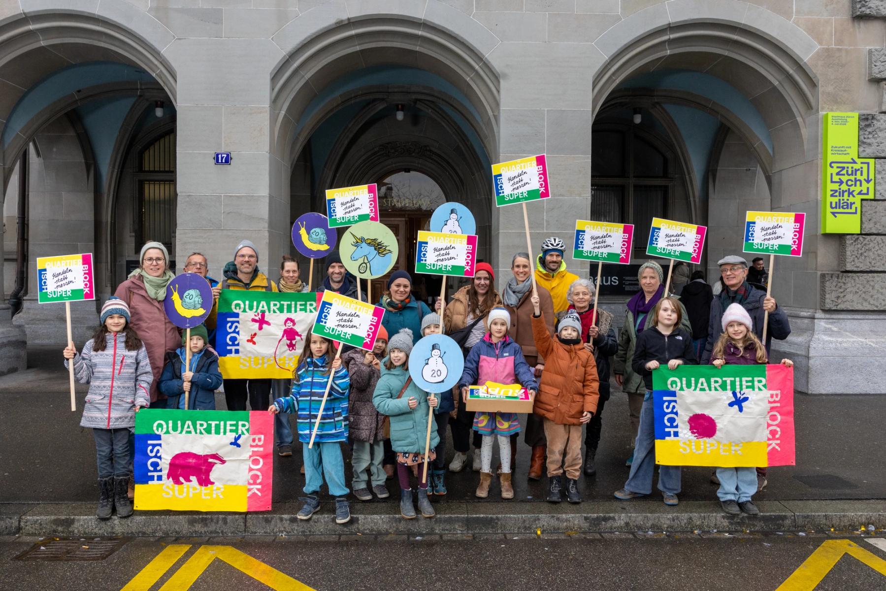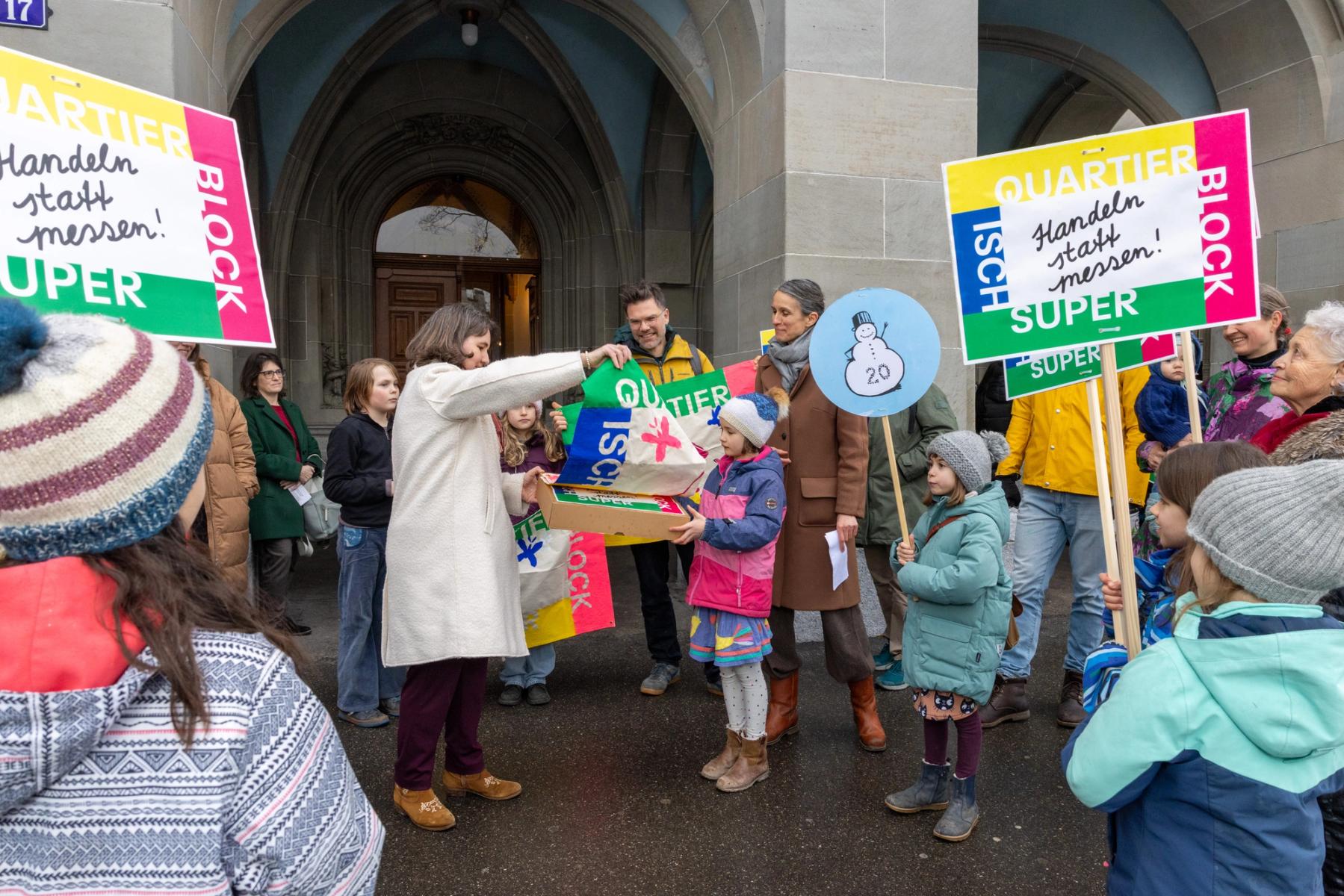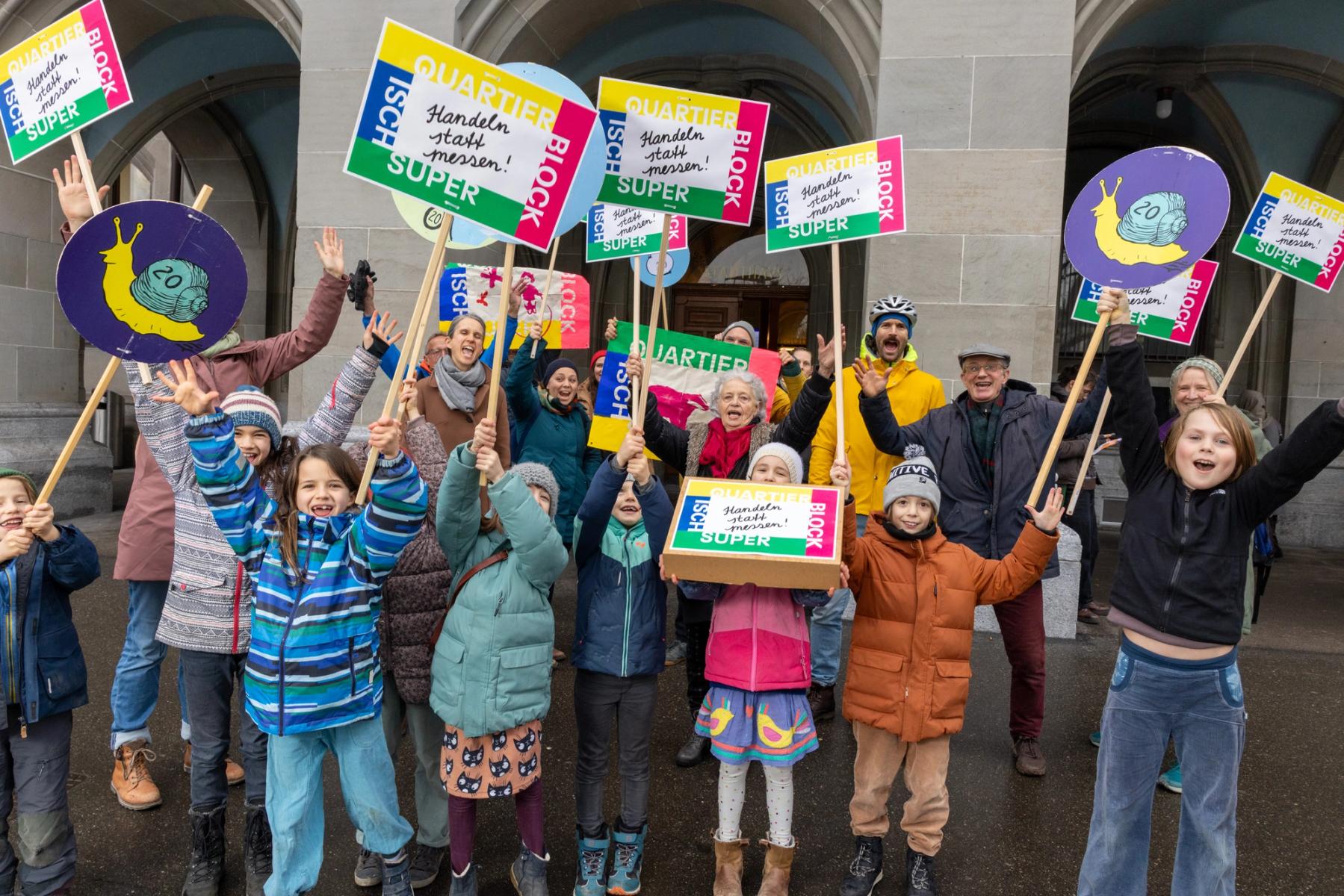 Zusammen mit der Klimagruppe Oberstrass fordern über 400 Unterzeichnende der Petition, das Pilotprojekt Quartierblock mutig und konsequent umzusetzen.