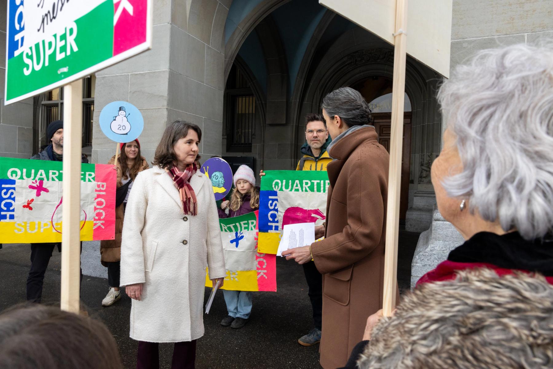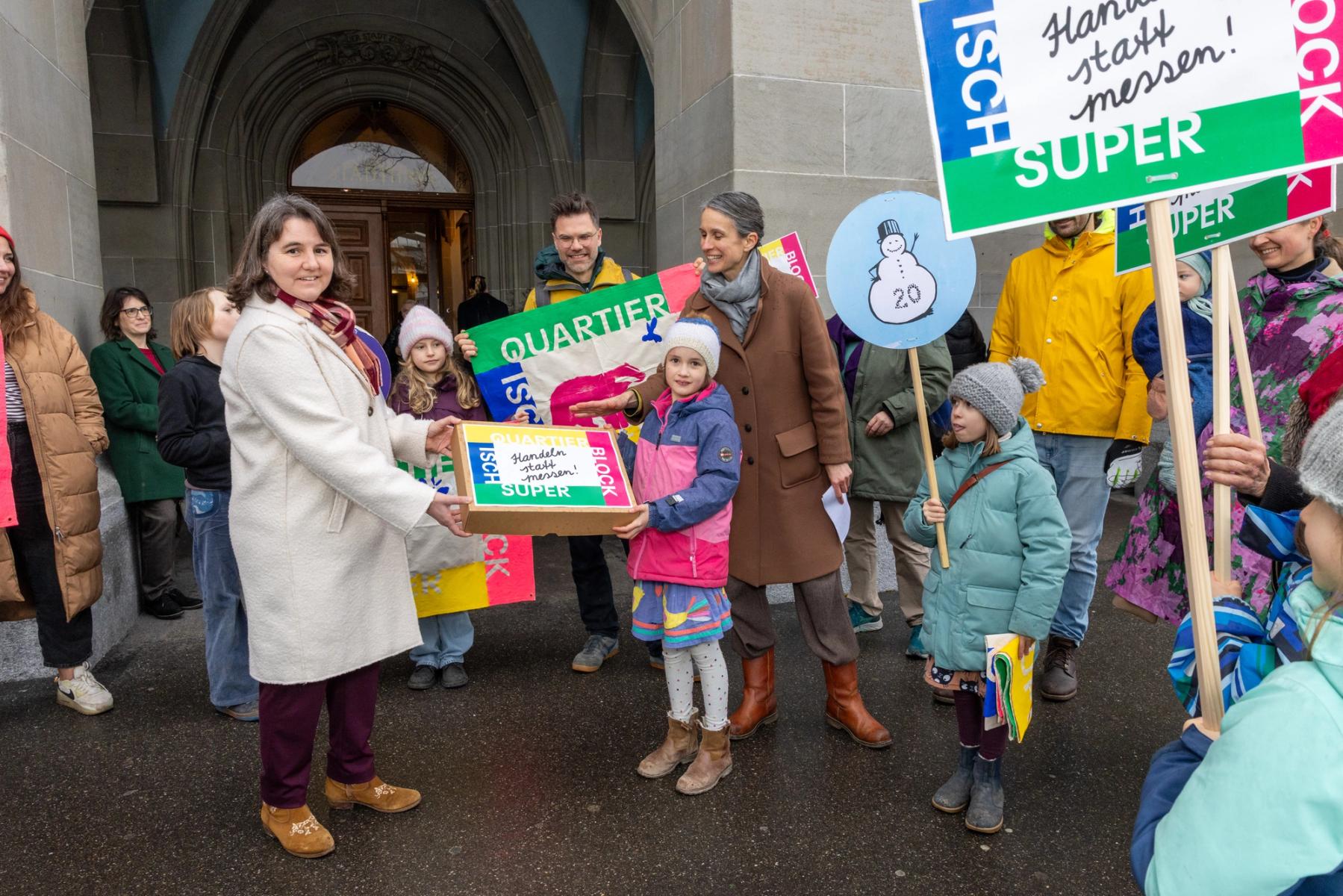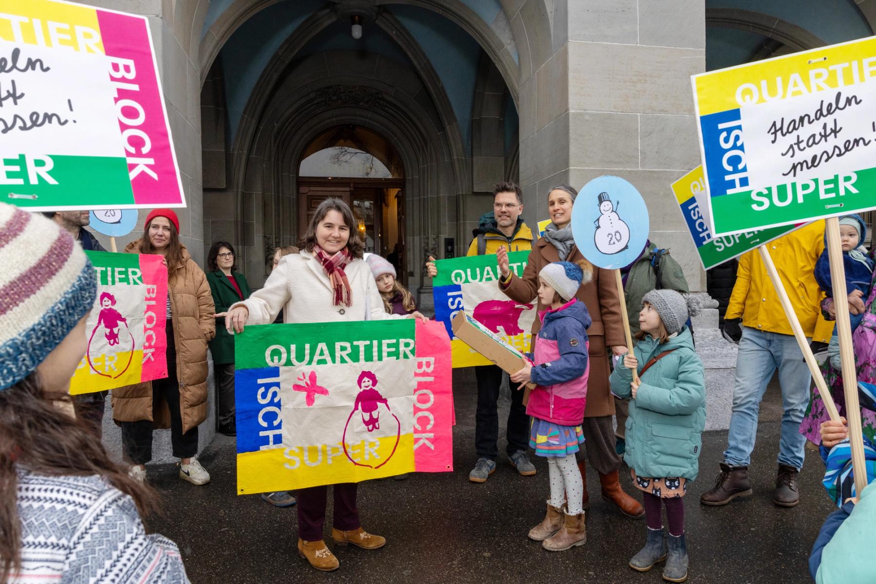Zusammen mit der Klimagruppe Oberstrass fordern über 400 Unterzeichnende der Petition, das Pilotprojekt Quartierblock mutig und konsequent umzusetzen.